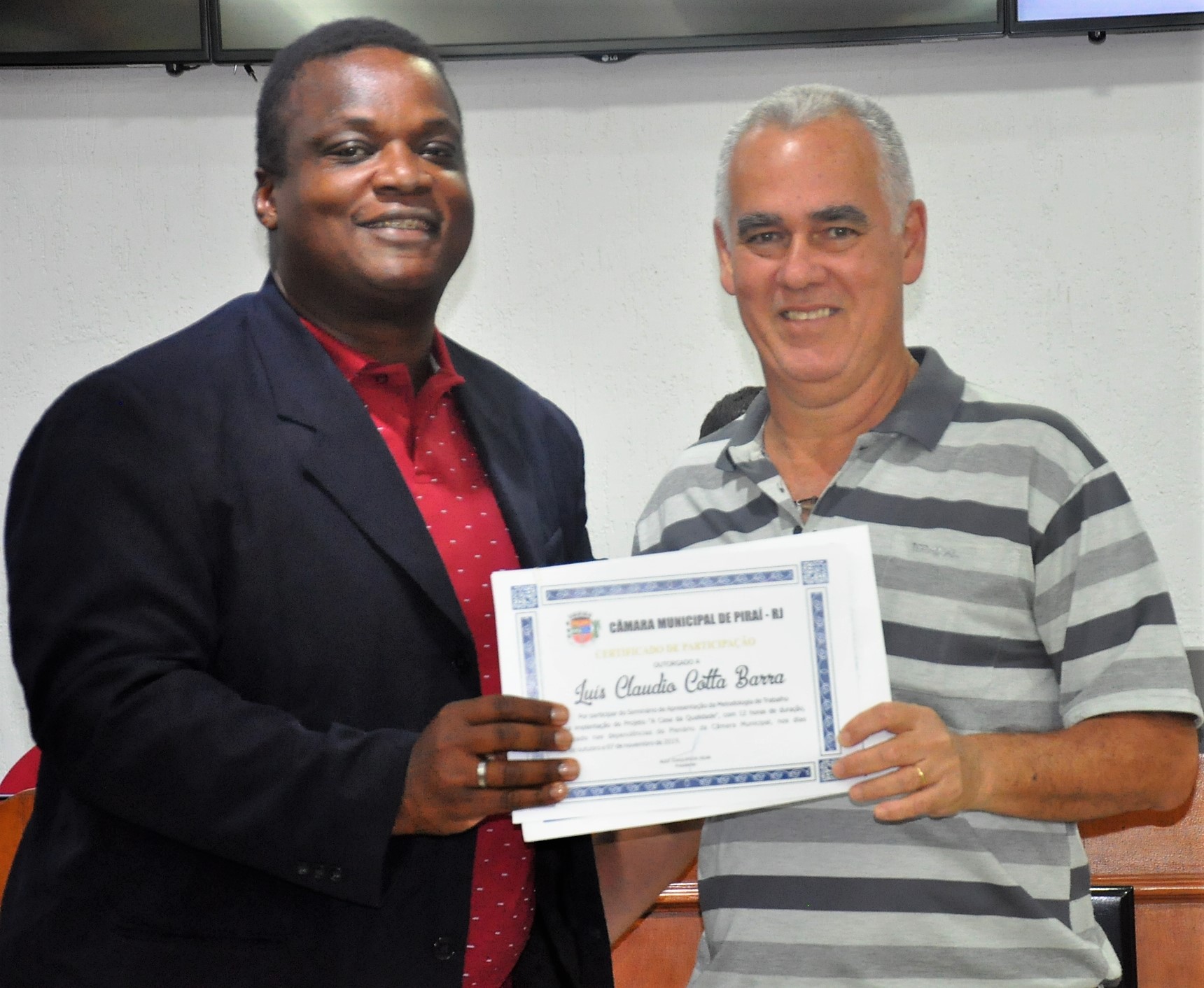 Entrega certificado de participação no seminário para implantação do projeto "A Casa da Qualidade"