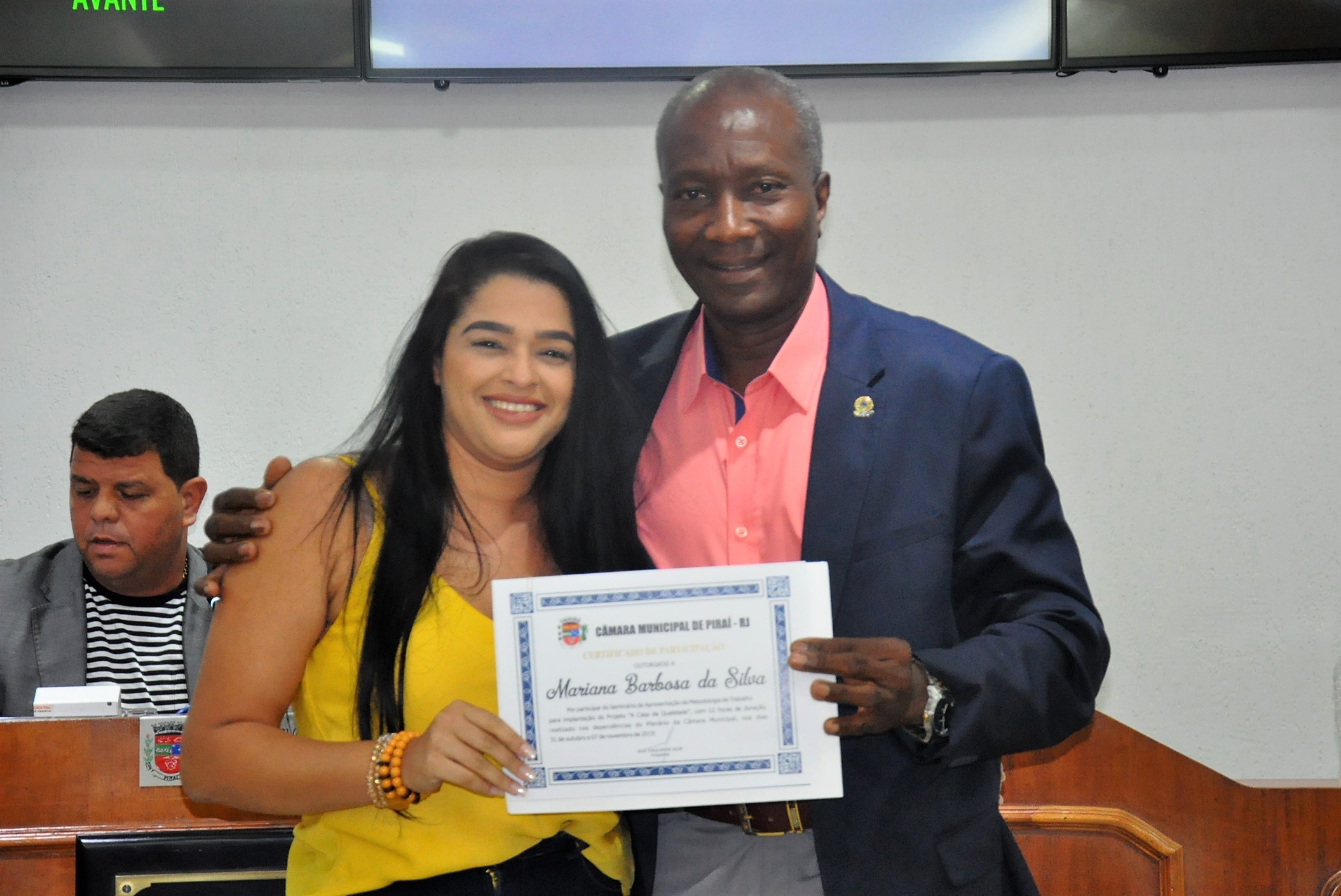 Entrega certificado de participação no seminário para implantação do projeto "A Casa da Qualidade"