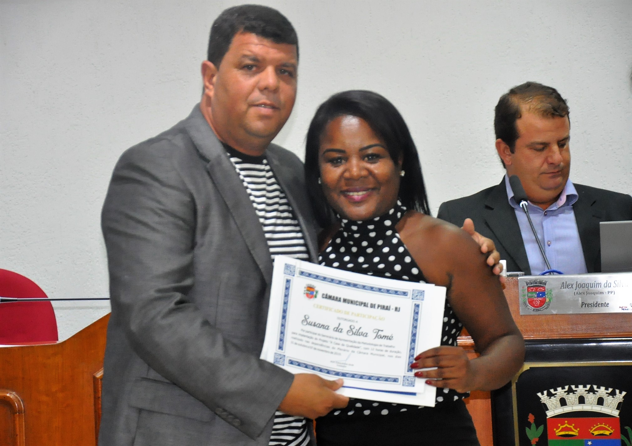 Entrega certificado de participação no seminário para implantação do projeto "A Casa da Qualidade"