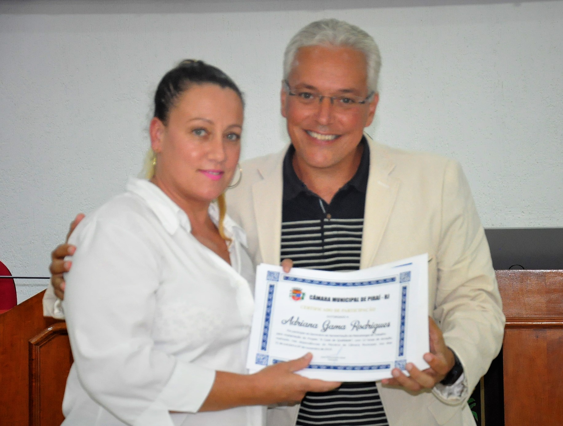 Entrega certificado de participação no seminário para implantação do projeto "A Casa da Qualidade"
