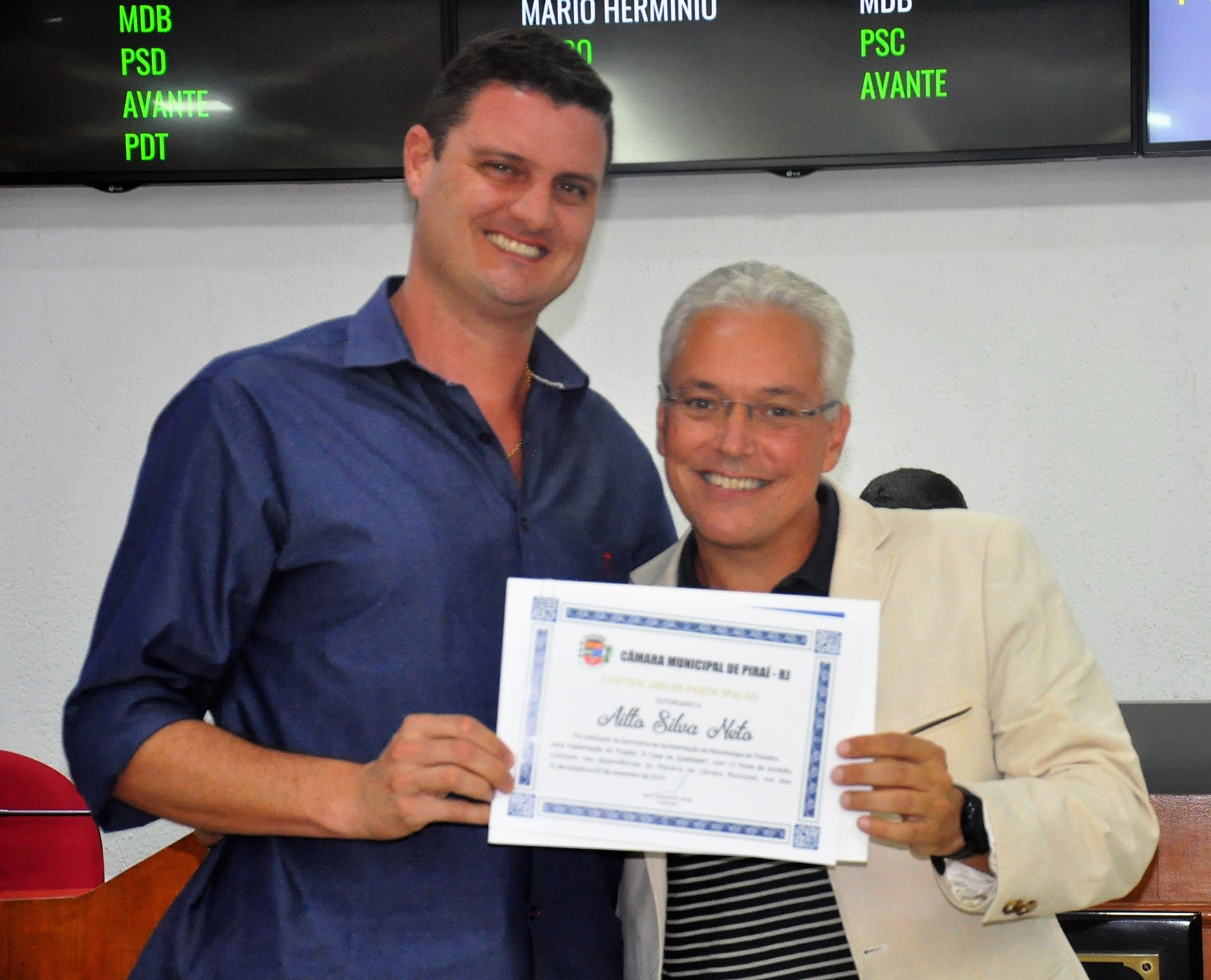 Entrega certificado de participação no seminário para implantação do projeto "A Casa da Qualidade"