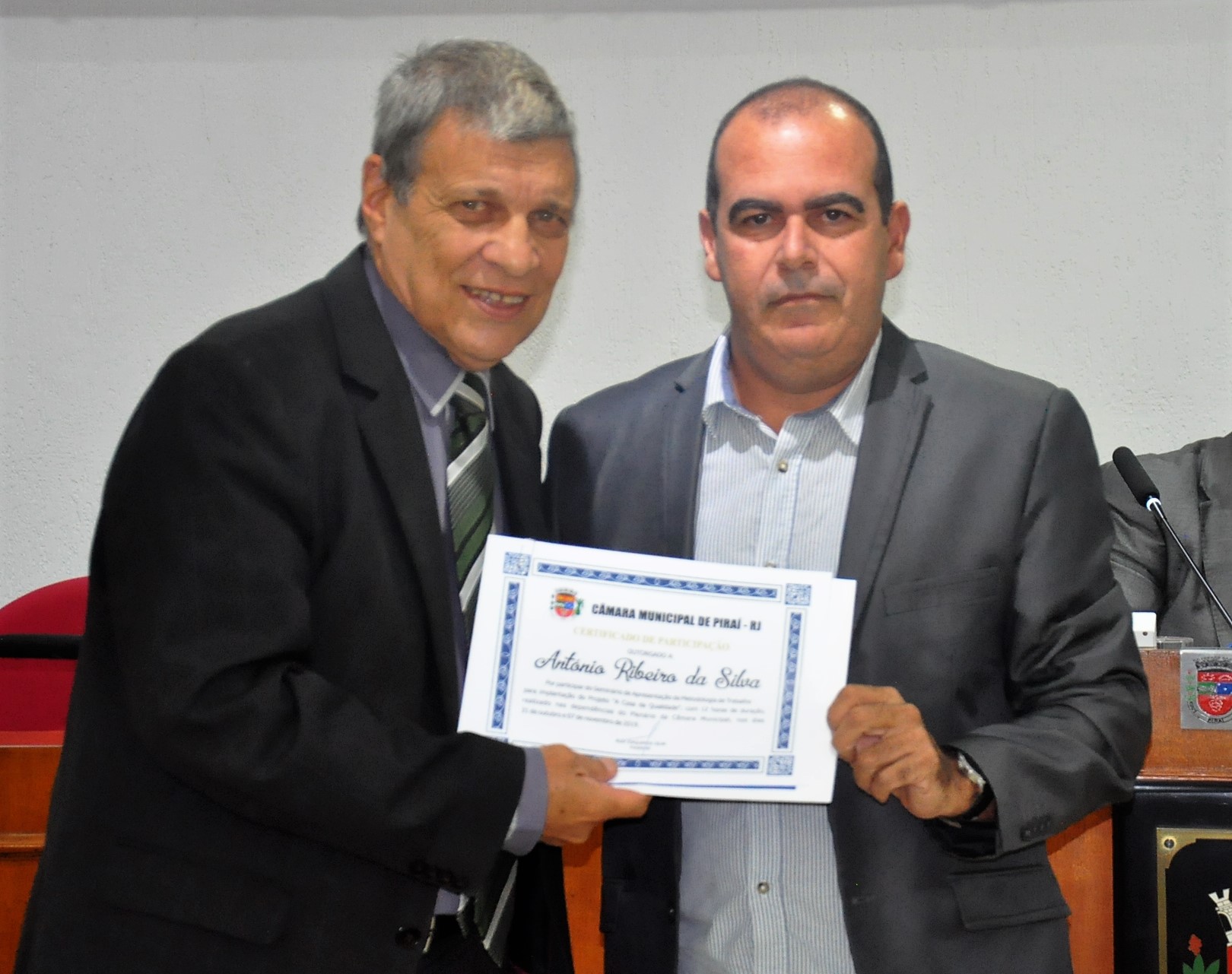 Entrega certificado de participação no seminário para implantação do projeto "A Casa da Qualidade"
